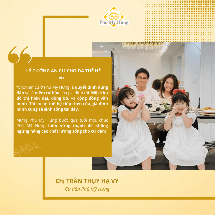 Đến từ nhiều vùng miền trong cả nước và các quốc gia trên thế giới, đa dạng lứa tuổi, công việc; điểm chung của họ là chọn Phú Mỹ Hưng làm bến đỗ an cư. Có người gắn bó với khu đô thị từ những ngày đầu. Có người 5 năm, 10 năm… và cũng có người chỉ vài tháng trước..